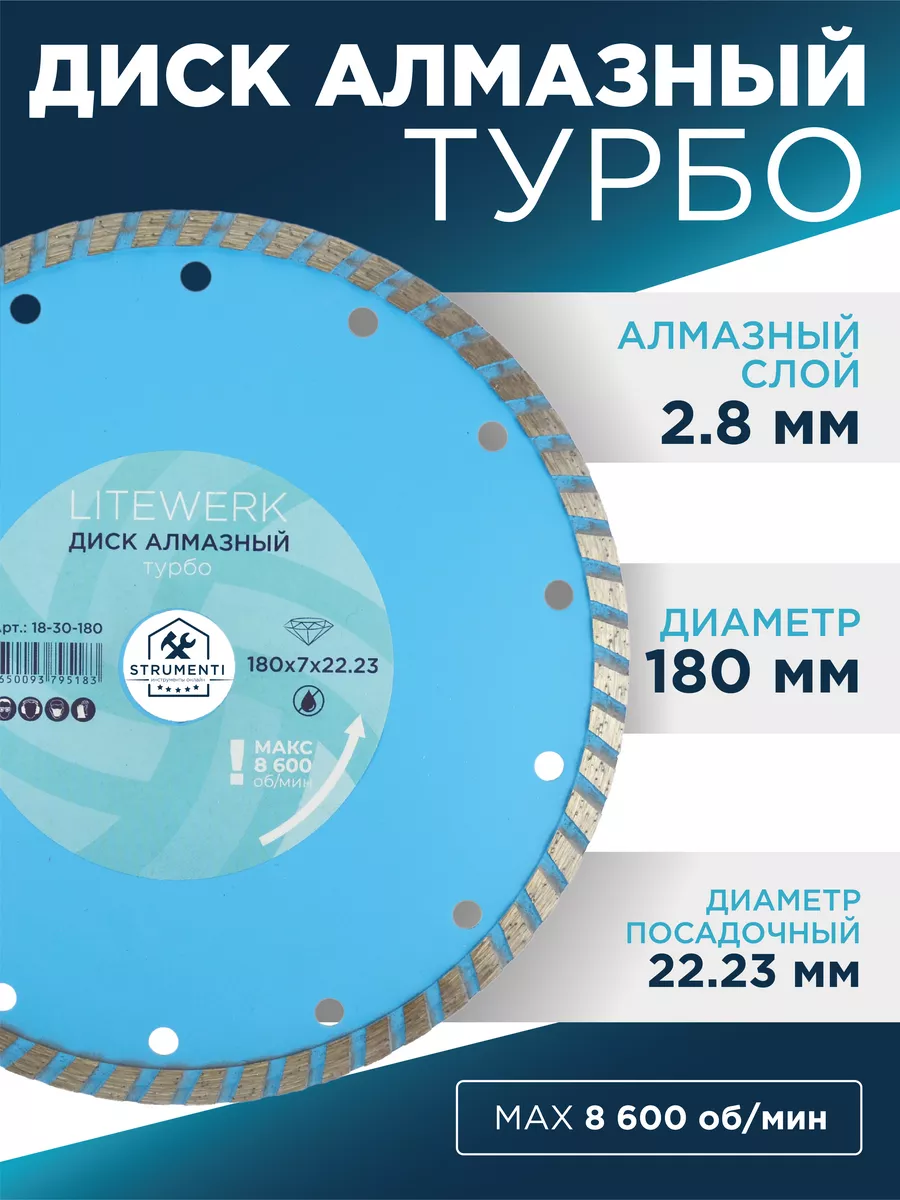 Купить Диск алмазный турбо, 180х22,23 мм, LiteWerk вы можете в компании Строймаркет, оформив заказ в интернет магазине, или